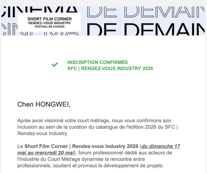 日前,由我校影视艺术学院2020级电视编导与制作方向硕士生陈洪卫(东东)执导、2020级编剧方向硕士生王珂编剧的短片《二〇〇〇年的夏》,成功入围第79届戛纳国际电影节“短片角·产业会面”(Short Film Corner | Rendez-vous Industry)策展单元。该单元将于2026年5月17日至20日举行,是全球短片产业领域的重要专业平台,旨在为创作者搭建国际交流渠道,推动短片艺术创新与项目孵化。