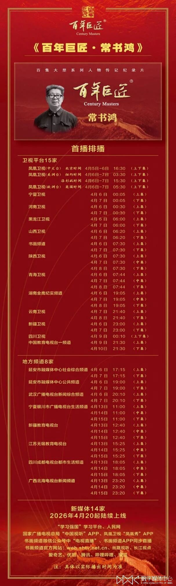 附:电视纪录片《常书鸿》首播平台列表